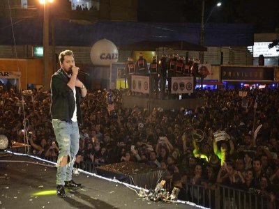 Antes de subir ao palco, o cantor concedeu uma entrevista coletiva à imprensa e enalteceu a festa.