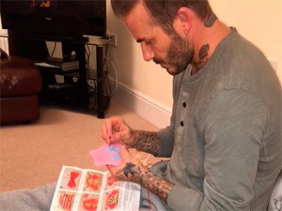 Victoria Beckham revelou o lado mais doméstico do marido, David Beckham. Em uma foto compartilhada em sua página do Instagram, pode se ver a antiga estrela de futebol com uma agulha na mão, costurando uma roupinha para a boneca da filha mais nova, Harper, de quatro anos.