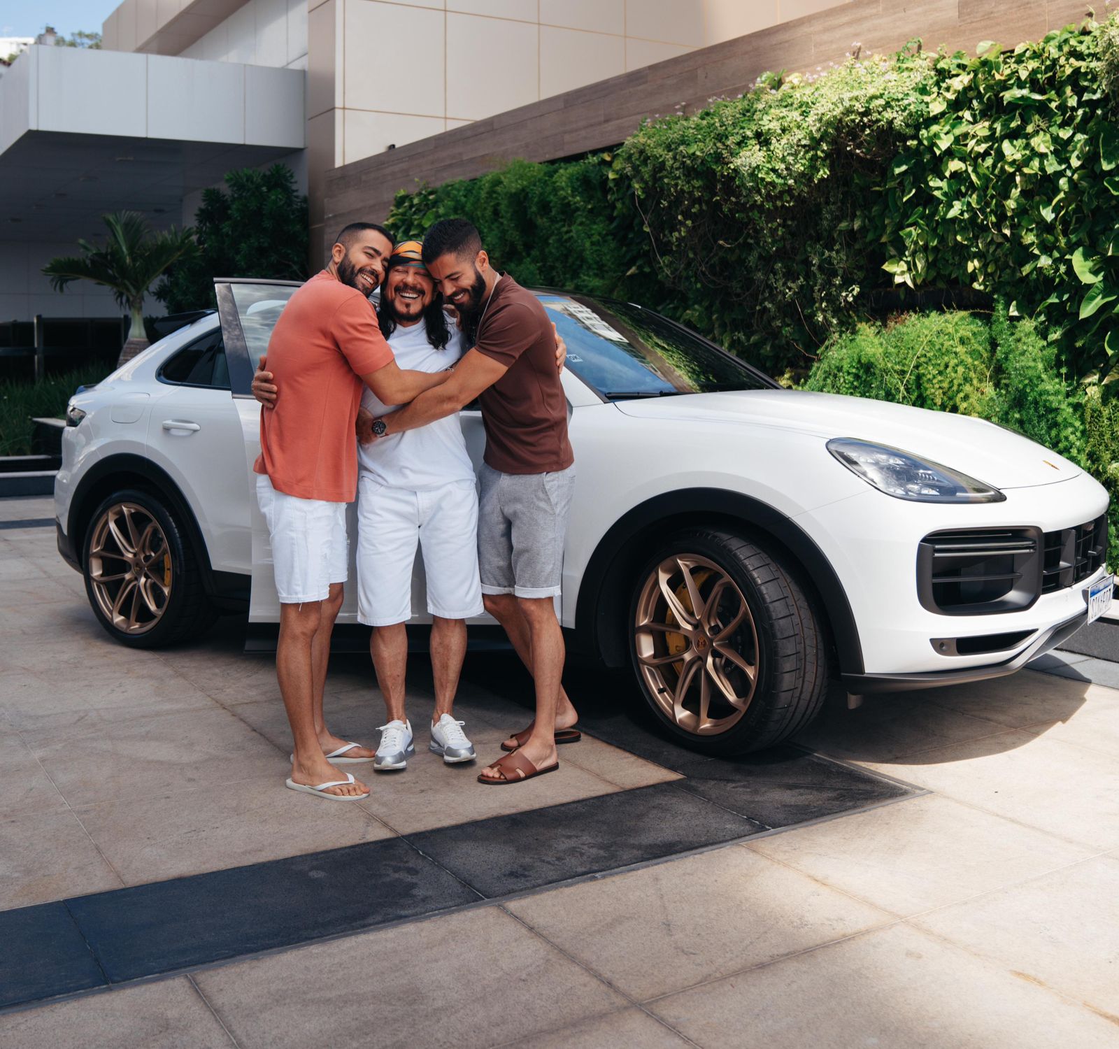 O artista foi presenteado com nada menos do que um Porsche Turbo GT branca. “Presente diferente, presente muito especial. Fiquei de bobeira”, disse, mostrando a chave do carro de luxo.