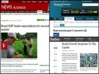 Para o site Yahoo! Finance, a recuperação da economia do Brasil “excedeu as mais otimistas expectativas do mercado” e foi influenciada pelo crescimento no segundo trimestre do setor agrícola (3,9%), industrial (2%) e de