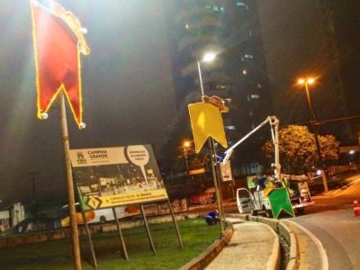 A implantação dessa decoração com temas juninos iluminados pela cidade já foi iniciada. No largo do Açude Velho, os postes já contam com balões e bandeirolas em LED e todo o contorno desse, que é um dos principais cartões postais da cidade, está recebendo mangueiras de LED em cores diferentes.