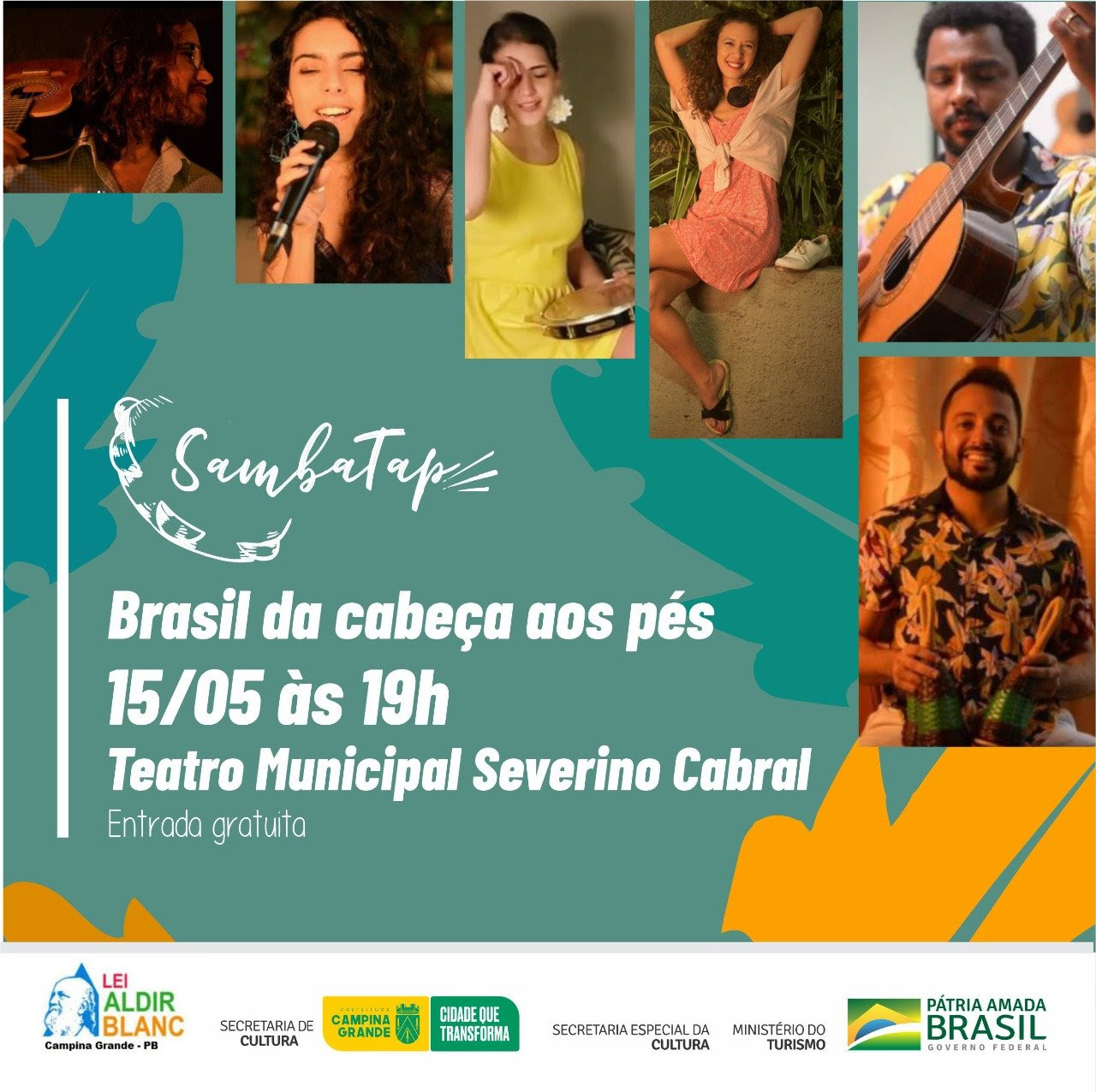 O Teatro Severino Cabral receberá neste domingo, 15, dois grandes shows de samba, a partir das 19h. Numa realização da Prefeitura de Campina Grande, por meio da Secretaria de Cultura, o grupo Samba Tap e a cantora Callianda Andrade levarão ao palco do Municipal um espetáculo com muito samba para o público, com apresentações de música e dança. Ambas as apresentações acontecem dentro do calendário de contrapartidas da Lei Aldir Blanc.