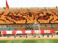 Esses sul-coreanos estavam torcendo por seu time de futebol em um estádio quando exibiram uma nova comemoração, a “LCD humano”.
