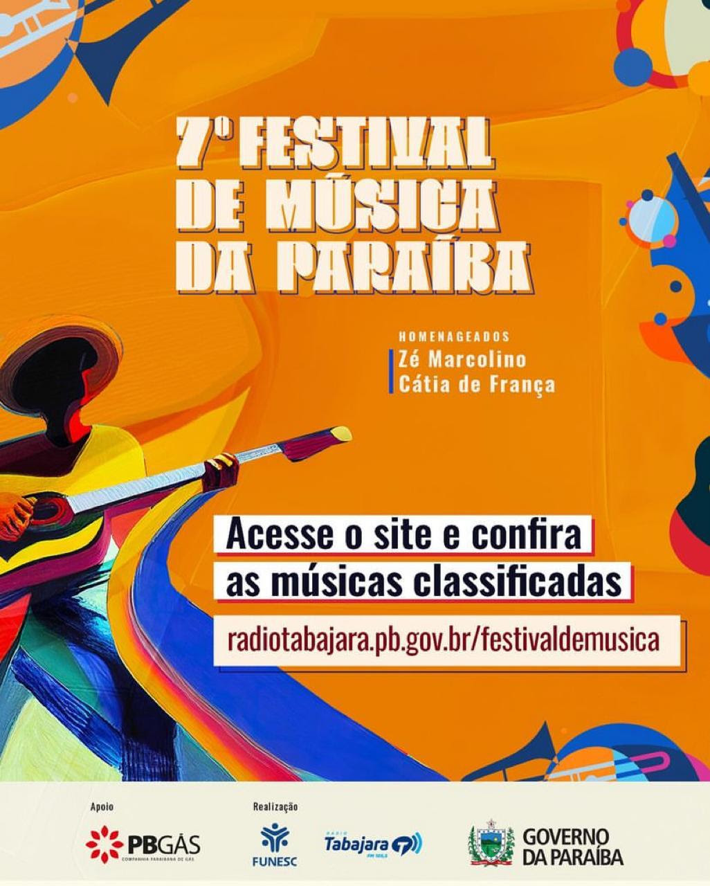 O Festival de Música da Paraíba divulgou nesta segunda-feira (8), no programa Tabajara em Revista, da Rádio Tabajara, a lista de classificados para as eliminatórias da sétima edição. Já a ordem de apresentação dos classificados será definida por meio de sorteio, nesta terça-feira (9), também no Tabajara em Revista, às 14h, com transmissão pela 105,5 FM e pelo YouTube da emissora.