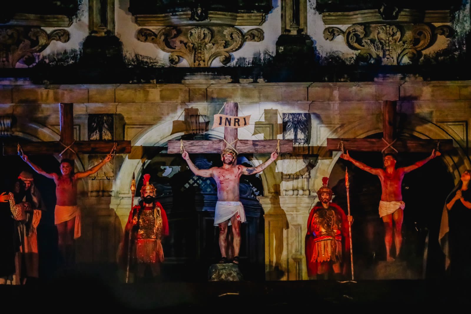 O ato tem duração de duas horas e mistura as principais passagens da vida, morte e ressurreição de Cristo e musicais com canções religiosas bem conhecidas do público, como Hosana, Noites Traiçoeiras e Aleluia. Uma iluminação marcante e projeções mapeadas na fachada da Igreja de São Francisco completaram o espetáculo.