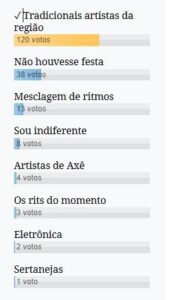 O público que gosta de assistir shows de bandas sertanejas no São João, segundo a enquete, não foi maior que 1%.