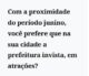 No entanto, existem aqueles que preferem que a festa não aconteça e estes somam 38%, de acordo com a enquete. 4% disseram ser indiferente às atrações contratadas.