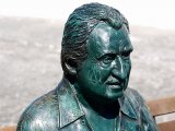A exemplo da estátua do poeta Carlos Drummond de Andrade na praia de Copacabana, no Rio, ela fica de frente para o mar.