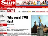 Os moradores da cidade de Dunchurch (Reino Unido) transformaram a estátua do século XIX do lorde John Scott no personagem “Homer Simpson”. A brincadeira é uma tradição na cidade britânica. Há mais de 40 anos, os moradores vestem a estátua com personagens famosos, segundo reportagem do jornal inglês “The Sun”.