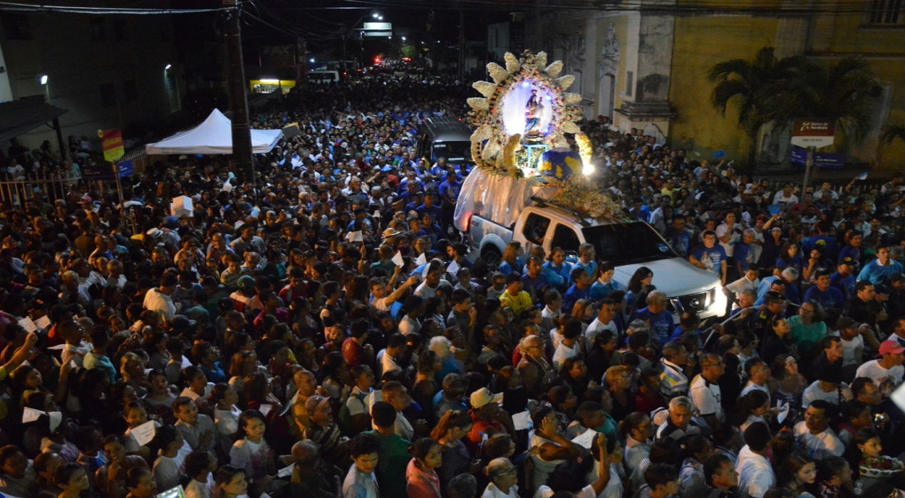 O trajeto de 14km da Romaria de Nossa Senhora da Penha foi tomado por fiéis na noite deste sábado (24) em João Pessoa. A procissão, que tem início na Igreja de Lourdes, na parte histórica da cidade, seguiu até o Santuário da Penha, localizado na praia da Penha com demonstrações de fé e devoção.