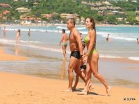 Joana Machado, com muito dinheiro na conta, aproveita o mar da Praia de Geribá, em Búzios. A loura está no balneário, onde frequenta desde a adolescência, acompanhada do namorado, Junior Figueiredo, e do filho caçula, Maurício. Entre um mergulho e outro, Joana dá aquela famosa ajeitadinha no biquíni. A praia só acabou no fim da tarde, quando decidiram ir embora.