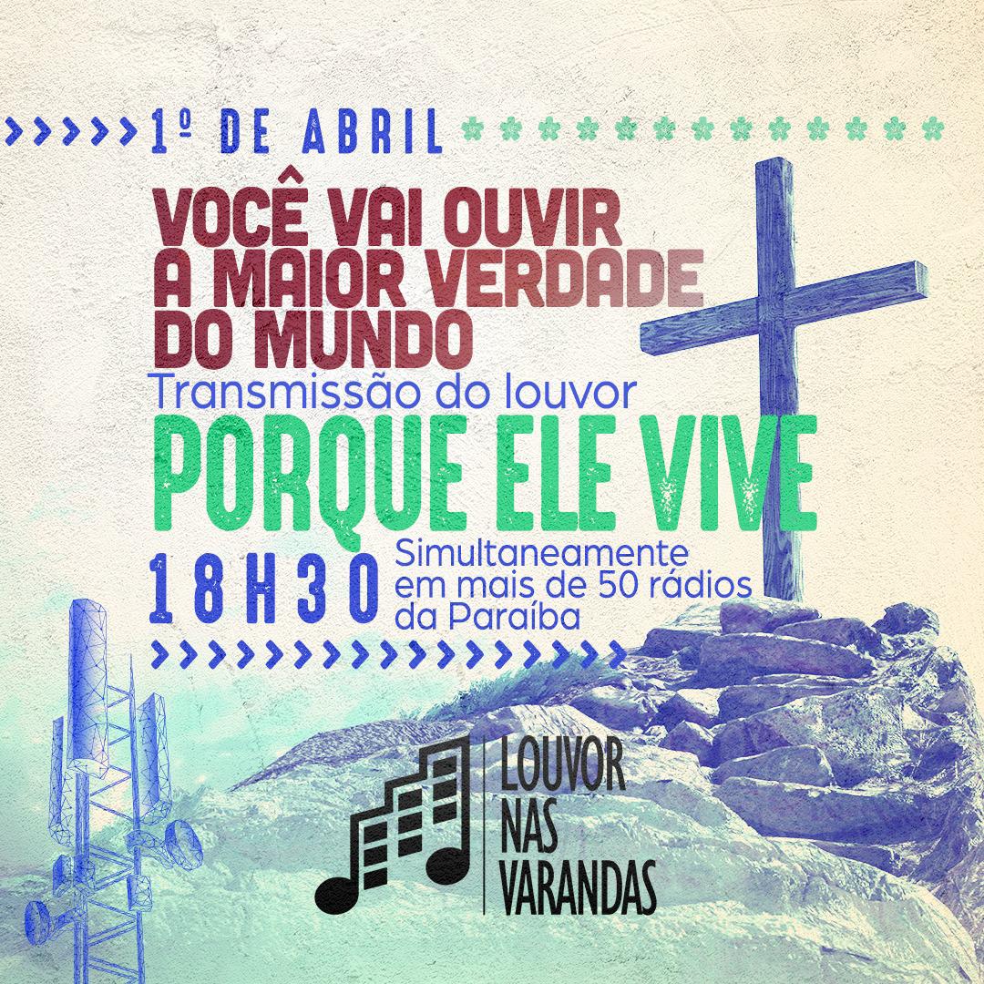Denominado ‘Louvor nas Varandas’, o ato que destaca que ‘Você vai ouvir a maior verdade do mundo’, numa transmissão simultânea por 50 rádios da Paraíba, que será realizada no próximo dia 1° de abril, ás 18h30, pretende reunir grande número de ouvintes de forma segura, sem aglomerar em cerimônias presenciais.