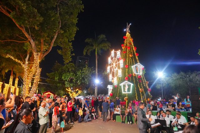 O local conta com uma árvore de 15 metros, um túnel de 60 metros, além de uma casa do Papai Noel, capela e tablado para apresentações culturais. A solenidade de hoje marcou o acendimento da árvore e também o início do trabalho dos comerciantes que estão instalados neste espaço. São 50 comerciantes fixos e 50 itinerantes.