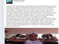 O cantor Netinho disse através de uma rede social na sexta-feira (31) que já viveu “uma experiência com anabolizantes”. Na publicação, o músico afirma que um médico de São Paulo receitou e vendeu o medicamento. Netinho foi internado em um hospital de Salvador no dia 24 de abril de 2013. Na ocasião, foram constatadas alterações no fígado do cantor.