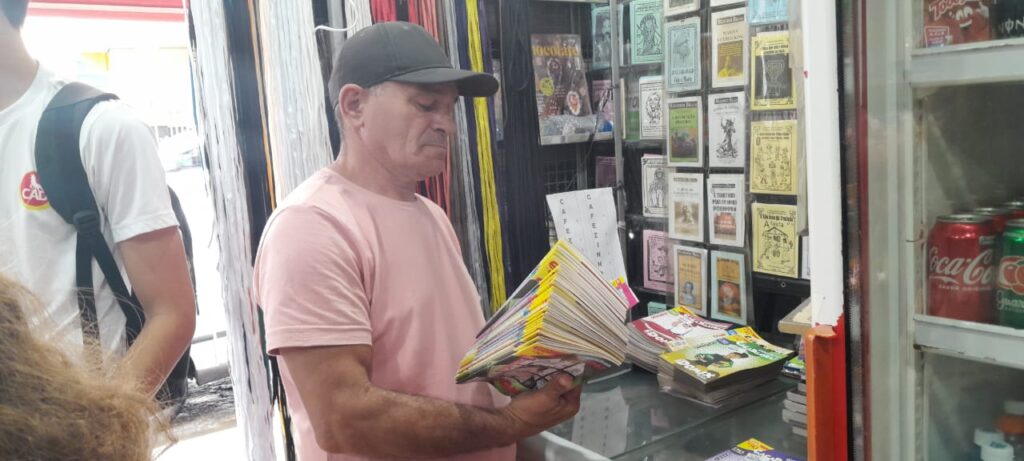“Eu tive que botar outras coisas tipo uma conveniente. Mas ainda ainda tem clientes fiéis, entendeu? Que prefere o papel. Porque pegar o papel, folhear o papel é diferente “, ressaltou.