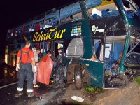 Um ônibus da banda Raça Negra derrapou e tombou na BR-101, próximo à cidade de Goiana, Mata Norte de Pernambuco, na madrugada desta segunda-feira (20), segundo informou a Polícia Rodoviária Federal. O grupo de pagode vinha de um show em Natal (RN) e embarcaria do Recife para Salvador (BA), de avião. A produção da banda informou que trinta pessoas costumavam viajar no ônibus, mas não há confirmação de quantas estavam nessa viagem e do número exato de feridos.