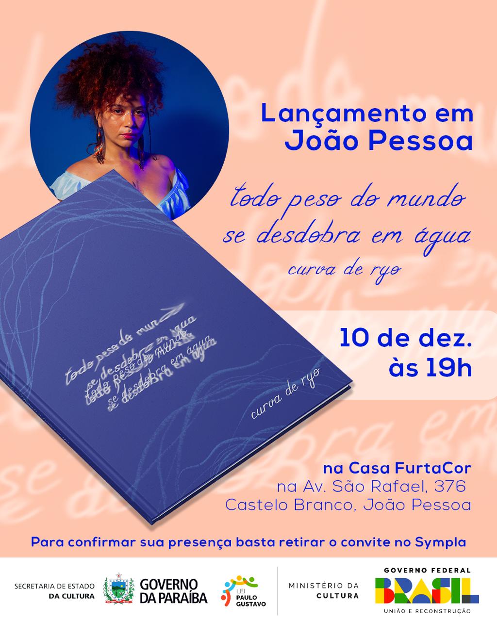 A literatura brasileira ganha novos ares com o lançamento de *Todo peso do mundo se desdobra em água*, obra de estreia da poeta e diretora de arte Curva de Ryo, radicada na Paraíba. O evento de lançamento acontece na próxima terça-feira (10), às 19h, na Casa Furtacor, em João Pessoa, e é aberto ao público. Os ingressos são gratuitos e podem ser adquiridos no site bit.ly/todopesoemaguaparaiba.