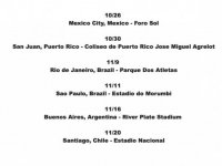 Gaga publicou a agenda de shows na América Latina em seu perfil no Twitter, na noite deste domingo (5). “Surpresa! Aqui está em primeira mão as datas da turnê na América Latina”, escreveu. Além do Brasil, a estrela pop se apresenta no México, Porto Rico, Argentina e Chile.