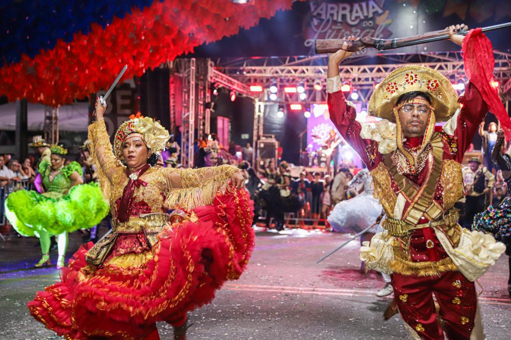 Uma explosão de cores e muita alegria! Foi assim a apresentação das Quadrilhas Juninas locais em mais uma noite do Arraiá do Litoral nesta terça-feira (27).