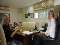 O governador Ricardo Coutinho recebeu, na tarde desta segunda-feira (14), na Granja Santana, a visita do cantor e compositor paraibano Geraldo Vandré, que se encontra em João Pessoa participando da X edição do Fest Aruanda. Na oportunidade, Vandré revelou ao governador seu interesse em realizar um trabalho novo junto com a Orquestra Sinfônica da Paraíba.