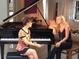 Com o cabelo mais comprido e franjinha, Sandy foi à casa da Eliana, em São Paulo, para gravar uma matéria com a apresentadora. Exibindo o novo visual, a cantora falou da carreira, vida pessoal e até arriscou algumas notas no piano, que Eliana tem na sala de sua mansão.