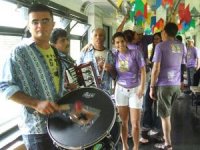 Embalados pelo autêntico forró Pé de Serra, idosos e jovens se confraternizam durante a viagem entre as estações de João Pessoa, Cabedelo e Santa Rita.