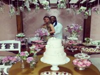 Vagner Love já é um homem sério novamente. O jogador se casou no civil com sua noiva, Lucilene Pires. Nas fotos que foram postadas no perfil do Instagram do casal, chamou atenção o look de trancinhas azuis do jogador e da decoração da festa que se seguiu a assinatura dos papeis no cartório.