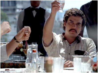 Pablo Escobar e sua versão interpretada por Wagner Moura na série “Narcos”