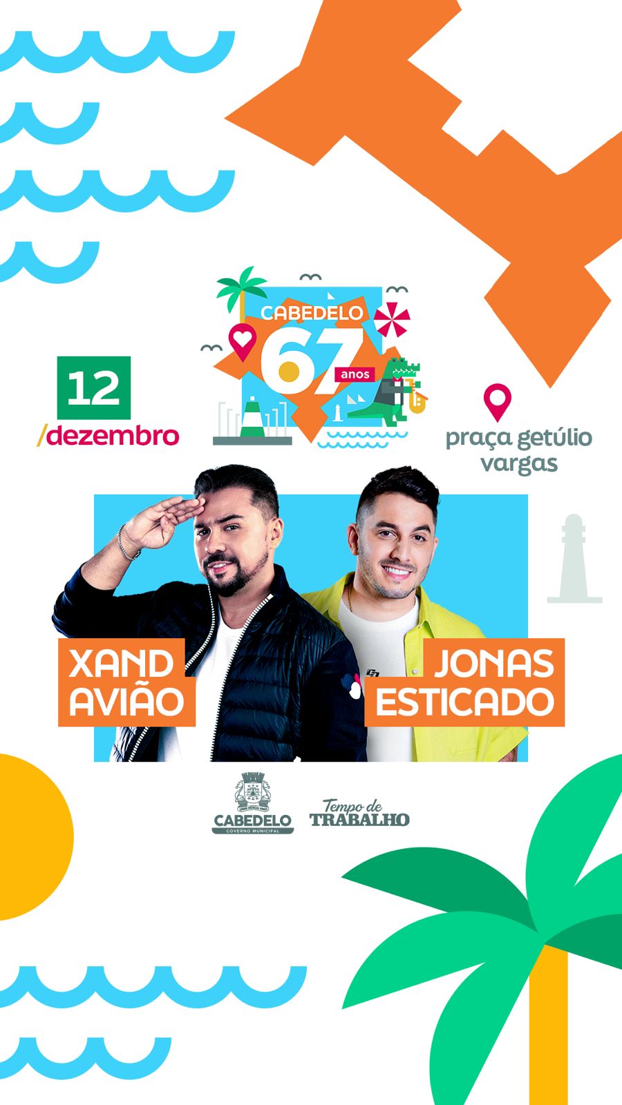Nesta terça-feira (12), Cabedelo comemora 67 anos de emancipação política. A data será celebrada em grande estilo com shows de Xand Avião e Jonas Esticado, a partir das 21h, na Praça Getúlio Vargas, no Centro da cidade.