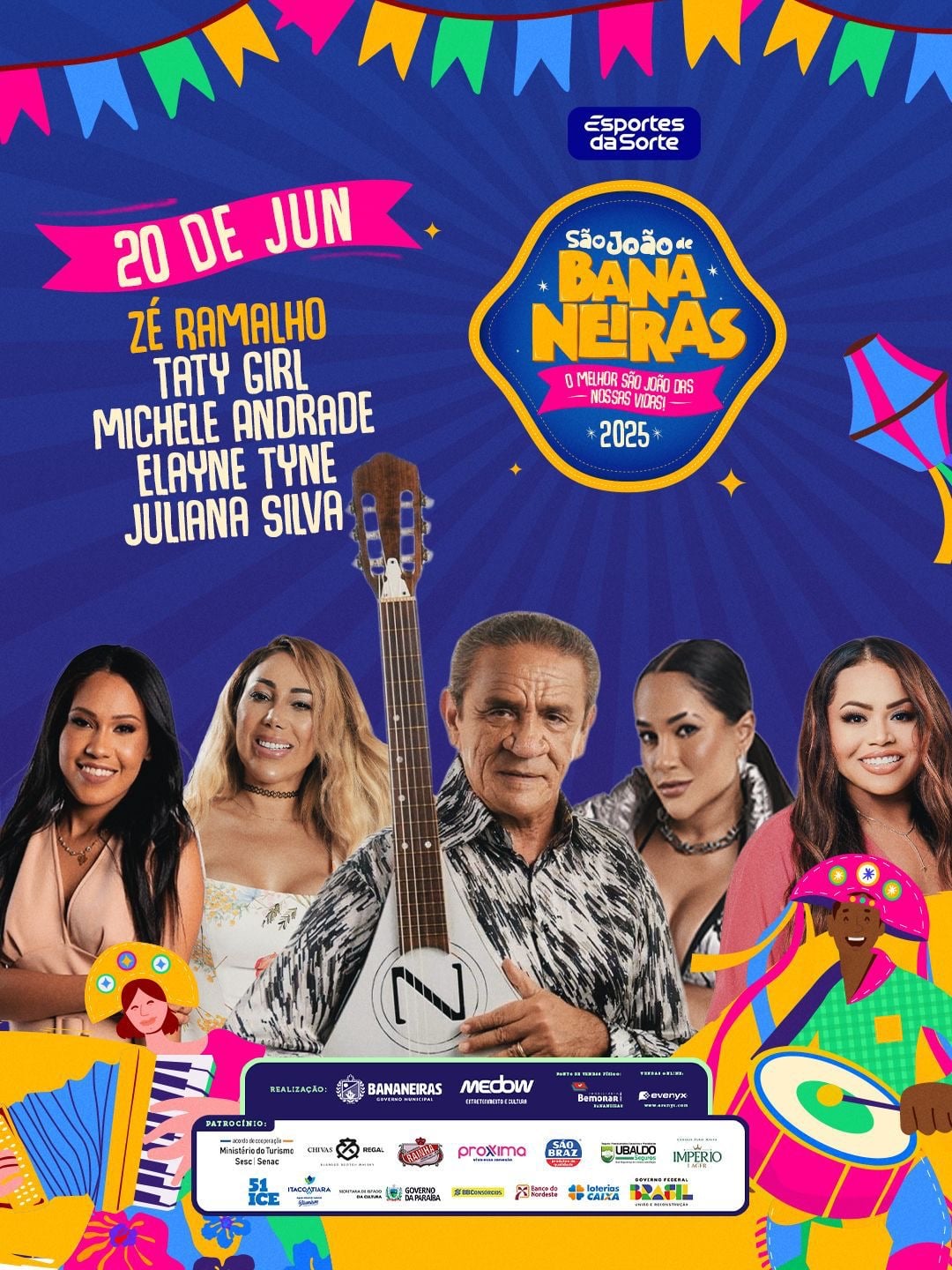 O São João de Bananeiras 2025 segue encantando o público com uma programação diversificada e estrutura impecável. E no dia 20 de junho, o Bananeiras Parque se prepara para uma noite especial, com shows que prometem emoção, ritmo e muita animação.
