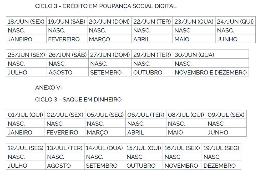 A partir desta sexta, os pagamentos serão realizados para os beneficiários nascidos em janeiro. Pelo calendário antigo, o crédito em poupança digital só iniciaria no dia 20 de junho.