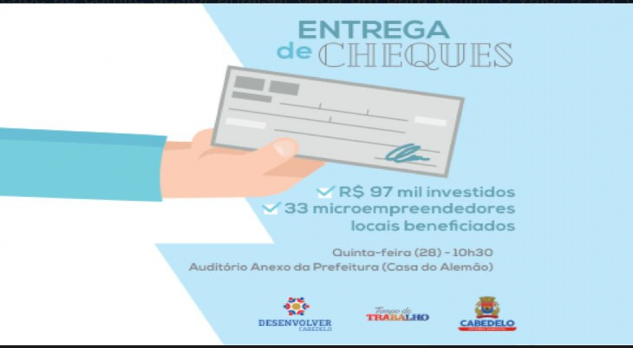 O prefeito Vitor Hugo entrega, nesta quinta-feira (28), crédito de R$ 97 mil a 33 microempreendedores locais dentro do programa Desenvolver Cabedelo. A solenidade acontece no auditório do Anexo da Prefeitura (Casa do Alemão), às 10h30.