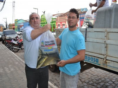 A distribuição dos peixes da espécie tilápia tailandesa ocorreu na Praça Pedro Américo, em frente ao escritório da Emater, quando os produtores tiveram de preencher um formulário de solicitação de peixamento informando no cadastro a identificação, localização, características e utilização do reservatório d´água. A distribuição foi gratuita e faz parte do Programa de Povoamento e Repovoamento de Reservatórios Públicos e Privados do Estado da Paraíba. Os responsáveis também receberam recomendações técnicas do andamento do povoamento de seus reservatórios por parte dos técnicos da Emater e Dipis.