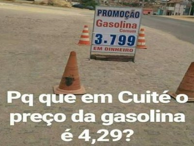 De acordo com o usuário, no município de Cuité a gasolina vem sendo vendida nos posto de combustíveis pelo valor médio de R$ 4,29. No entanto, no município de Picuí, que faz limite com Cuité, na Região do Seridó paraibano, o mesmo combustível é vendido R$ 0,50 mais barato.