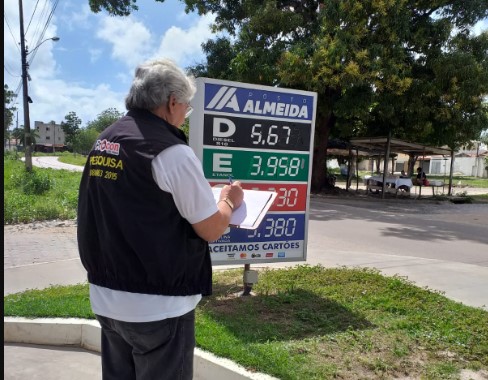 O levantamento do Procon-JP foi realizado em 110 postos no dia 12 de abril e registra que, em comparação com a última pesquisa, a gasolina comum aumentou em dois locais, reduziu em 23 e se manteve em 83 postos. Para pagamento no cartão, o preço do produto foi encontrado entre R$ 5,240 e R$ 5,590, com diferença de R$ 0,35 e variação de 6,6%.