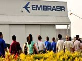 Trabalhadores do primeiro turno da fábrica da Empresa Brasileira de Aeronáutica (Embraer), em São José dos Campos (SP), participaram nesta sexta-feira de um ato em protesto às 4,2 mil demissões anunciadas pela empresa na tarde de ontem.