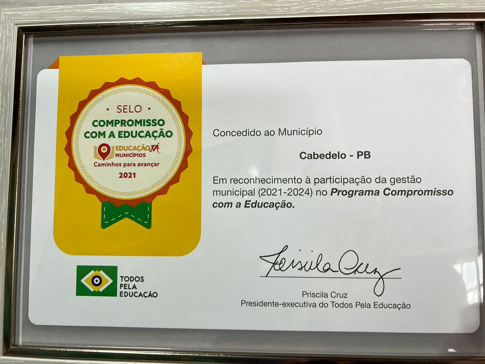 Cabedelo foi reconhecida por seu desenvolvimento educacional e recebeu o “Selo Compromisso com a Educação 2021”. Promovido pelo Programa Nacional Todos Pela Educação, a iniciativa visa valorizar as ações educacionais e o engajamento dos seus profissionais no programa.