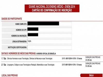 Cartão de inscrição – Vale lembrar que o cartão de inscrição é a garantia do direito de participar das provas do Enem 2017, e que serão disponibilizadas pelo portal do Inep. O cartão não será exigido nos dias de provas, como aconteceu nas edições anteriores, pois o documento serve para confirmar que o participante está apto a participar do Enem 2017, e para informar ao candidato as informações necessárias e do local de provas. Nele terá o número da inscrição; data; hora e local; indicação do possível atendimento diferenciado ou específico (caso solicitado); opção de língua estrangeira (inglês ou espanhol) e solicitação de certificação (caso solicitado também).