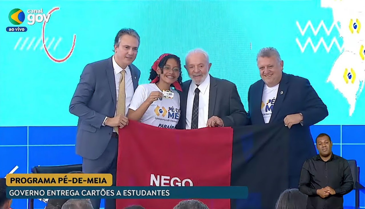 A estudante paraibana Larissa Galdino da Costa, da Escola Cidadã Integral Técnica (ECIT) Pastor João Pereira Gomes, em Mangabeira, foi uma das beneficiárias presentes na cerimônia de anúncio do pagamento do Pé-de-Meia, no Palácio do Planalto, na manhã desta segunda-feira (25), onde recebeu diretamente das mãos do presidente da República, Luiz Inácio Lula da Silva, o cartão do programa. Ao lado da gerente da 1ª Gerência Regional de Educação, Wleica Quirino, e de outros estudantes e gestores de todo o país, Larissa representou os cerca de 116 mil estudantes matriculados em escolas públicas paraibanas com oferta do ensino médio inscritos no programa, bem como toda a Paraíba.