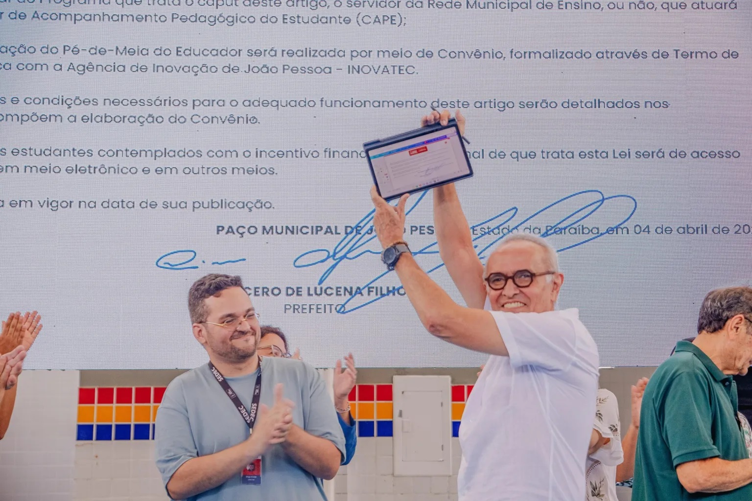 O prefeito Cícero Lucena assinou a medida provisória e encaminhou à Câmara Municipal de João Pessoa, nesta sexta-feira (4), o projeto de criação do Programa ‘Iniciativa Futuro’ (Pé-de-meia Municipal). A proposta é um incentivo financeiro-educacional voltado para estudantes do 8º e 9º anos e ciclo IV da EJA (Educação de Jovens e Adultos) que se destacam pela dedicação, aprendizagem e frequência na escola.