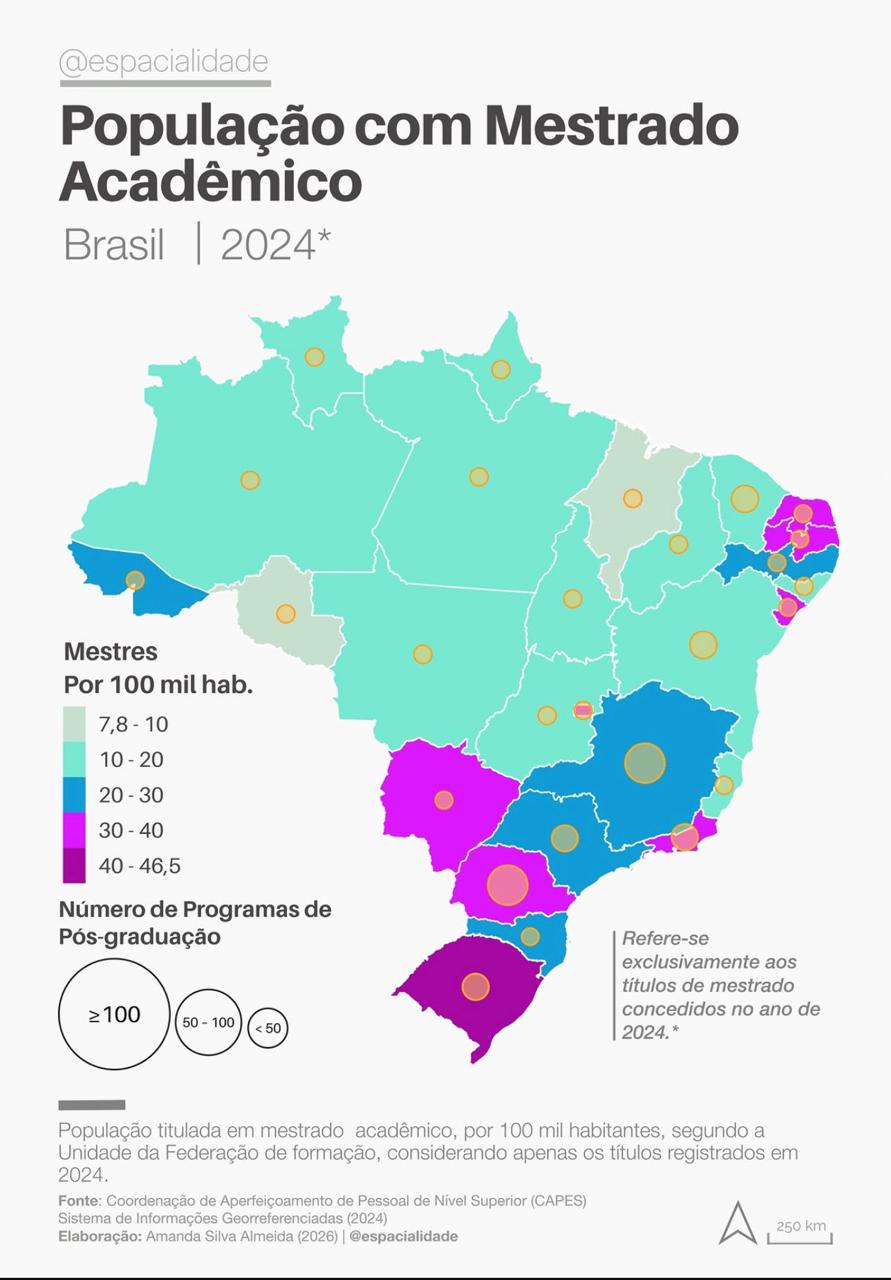 A Coordenação de Aperfeiçoamento de Pessoal de Nível Superior (CAPES), por meio do Sistema de Informações Georreferenciadas (2024), divulgou ontem (18), um estudo nacional onde aponta a distribuição territorial do mestrado e do doutorado no Brasil, onde estaca que está associada à dinâmica institucional e científica presente em cada fração do território. Neste âmbito a Paraíba foi referenciada, por meio da sua gestão educacional, que possibilitou a ampliação na origem da sua formação.