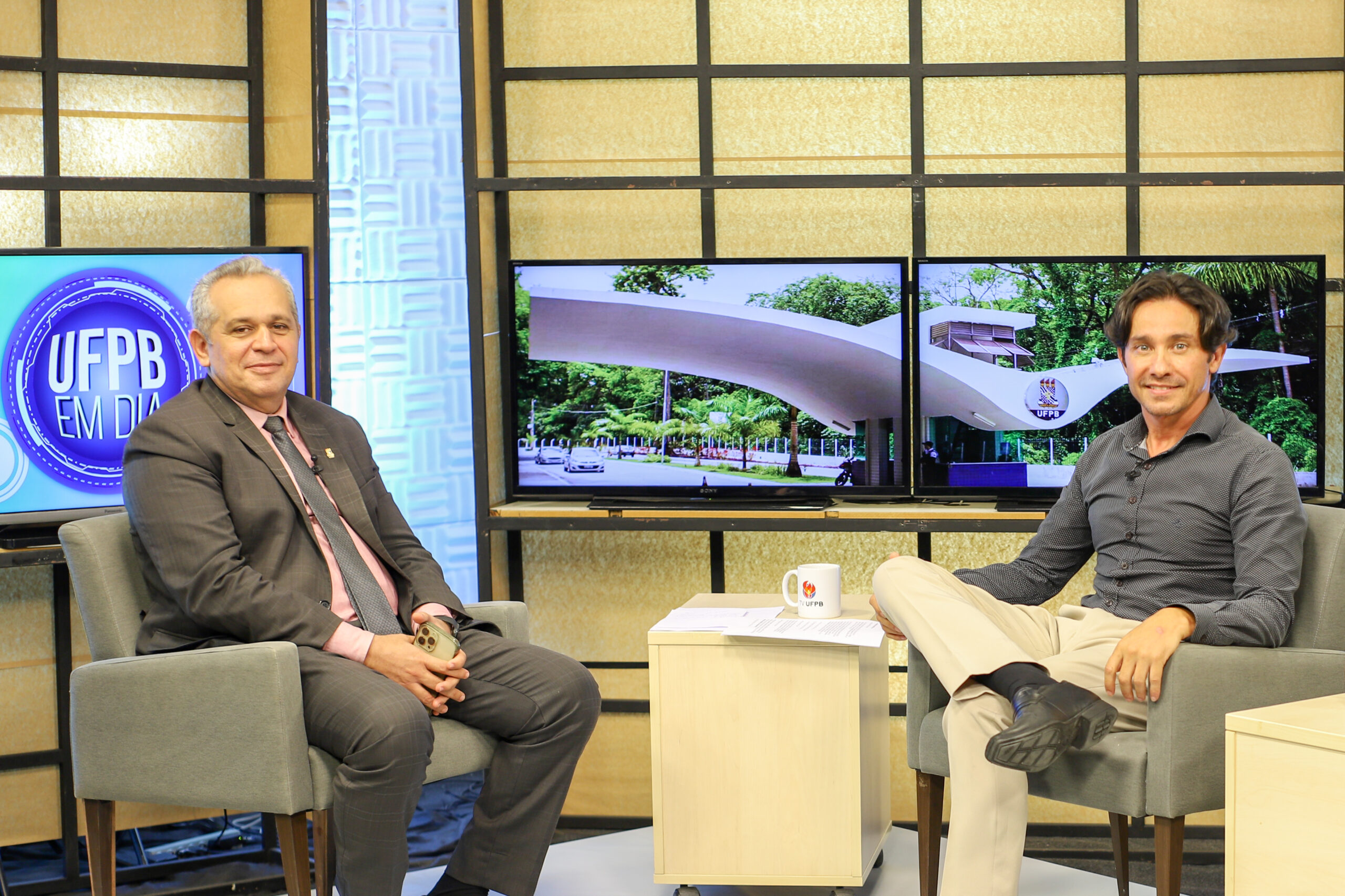 O Reitor da Universidade Federal da Paraíba (UFPB), Prof. Valdiney Gouveia, e o Superintendente do Hospital Universitário Lauro Wanderley (HULW/UFPB), Dr. Marcelo Tissiani, apresentaram, nesta quinta-feira (15), um balanço dos dois primeiros anos de suas gestões na Universidade. Eles foram os convidados do Programa “UFPB em Dia”, da TV UFPB, que foi ao ar hoje, com transmissão ao vivo pelo canal 43.1 digital da TV aberta e pelo canal da TV UFPB no YouTube (por meio do qual o programa pode ser assistido).