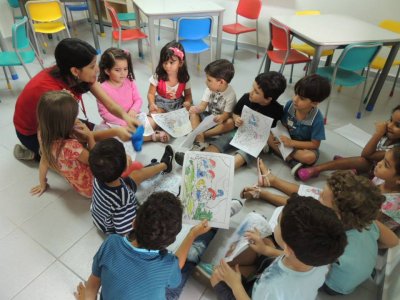 "Em nossa escola as aulas são dinâmicas e variadas a cada dia, mas apresentam uma rotina em termos de sequência de atividades. Essa rotina é importante para dar segurança à criança, que ainda está aprendendo a se situar no mundo. O próprio material ajuda a trabalhar essa rotina, com seus momentos específicos e bem definidos: a hora da música, a hora da história, a hora dos jogos, entre outros", conta a coordenadora Cida Prather.