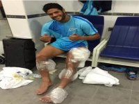 O resultado da grande atuação foi esse visto nas imagens abaixo: o jogador precisou colocar gelo nas pernas para recuperar a musculatura.