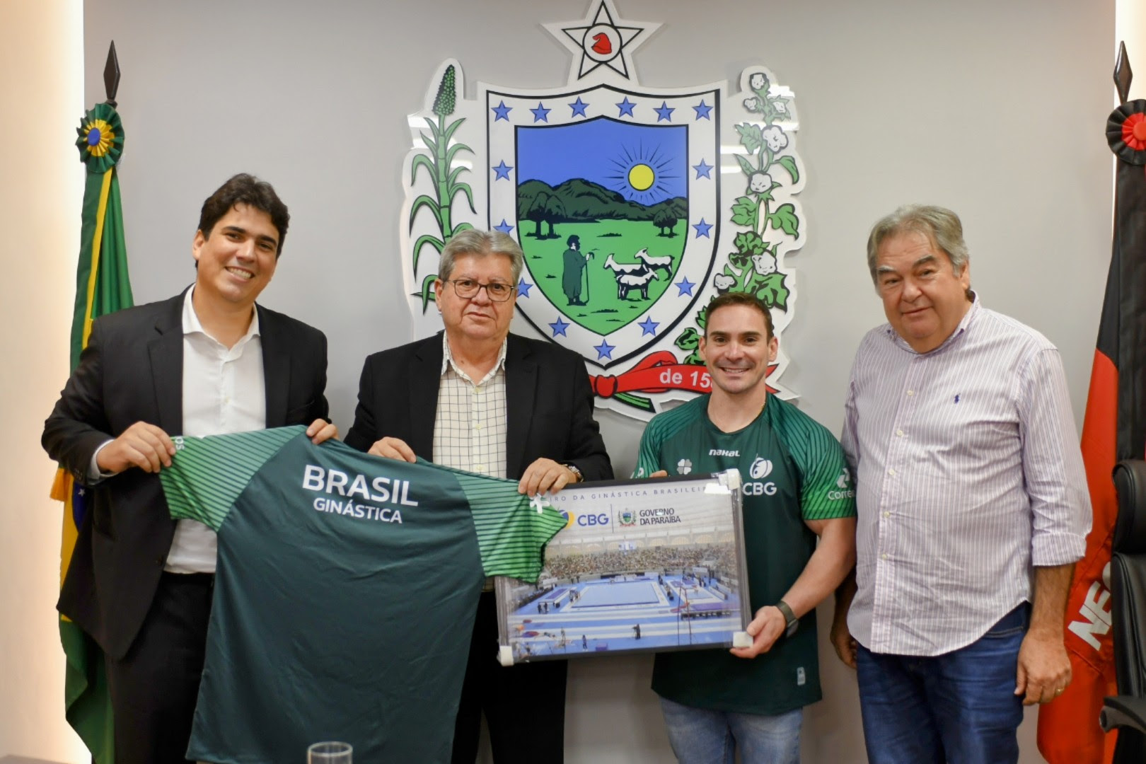 O governador João Azevêdo anunciou, na tarde desta terça-feira (27), a realização do Torneio Nacional de Ginástica Artística na Paraíba, entre os dias 9 e 16 de novembro, que deve reunir mais de mil atletas de todos os Estados brasileiros. A confirmação ocorreu após reunião com dirigentes da Confederação Brasileira de Ginástica (CBG) e com o ginasta e campeão olímpico Arthur Zanetti, na Granja Santana, em João Pessoa.