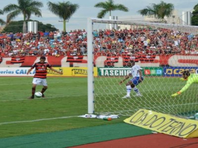 Dependendo somente de suas forças, o Bahia começou partindo para cima do Atlético-GO e Tiago assustou Klever logo na primeira chegada, mandando de cabeça por cima do gol dos mandantes. Em um jogo bem abaixo do esperado, equipes tinham dificuldades para criarem jogadas de perigo. Aos 35, Régis cruzou bola com perigo e Edigar Junio apareceu para abrir o placar. Antes do fim da primeira etapa, Júnior Viçosa deixou tudo igual, após receber bom passe de cabeça e acertar um bonito chute de primeira, sem chances para Muriel.