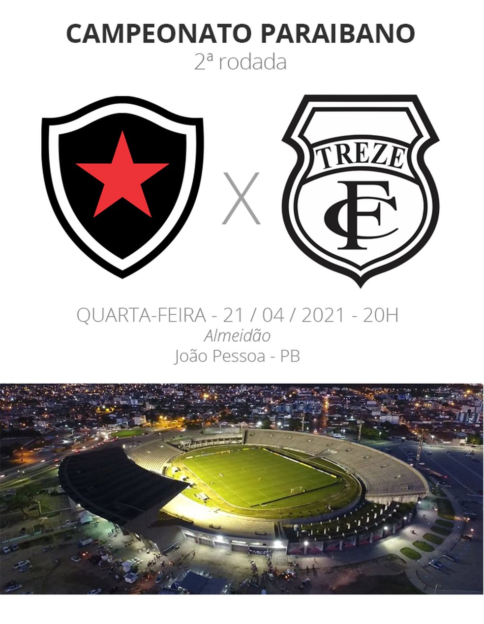 Rivalidade em campo. A 2ª rodada do Campeonato Paraibano começa nesta quarta-feira (21), com o Clássico Tradição entre Botafogo e Treze. O duelo, segundo das duas equipes nesta temporada, acontece às 21h30 no estádio O Almeidão em João Pessoa. As duas equipes venceram na estreia, e quem vencer, assume a liderança isolada da competição, além de manter os 100% de aproveitamento.