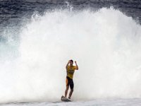 O adversário, que lutava pelo título da Tríplice Coroa Havaiana (soma dos resultados dos principais campeonatos realizados no Havaí), reagiu com um tubo avaliado em 7,17. Depois de administrar bem o tempo, o brasileiro entubou Backdoor (direita da onda) e garantiu a vitória na bateria, com mais um 8,83. O resultado eliminou o multicampeão Kelly Slater da disputa pelo título, agora era só esperar por Mick Fanning.