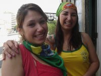 A brasileira Luciana Lima, de 32 anos, e a portuguesa Margarida Gonçalves, 22 anos estão somando torcida para os dois times e só sabem uma coisa: vai haver festa não importa o placar. "Hoje eu fico feliz com qualquer placar, mas se fosse final eu torceria mesmo pelo Brasil", diz Luciana, que garante que não ficaria triste Portugal ganhasse o mundial. "Ruim seria se a Argentina ganhasse." Morando em Lisboa há cinco anos, ela incorporou o ditado repetido pelo pai de que onde se ganha o pão, também se dá a mão. A amiga portuguesa se rendeu aos encantos dos brasileiros e resolveu torcer também. "Gosto dos brasileiros, conheço muitos e por isso torço pelos dois. Ainda quero conhecer o Brasil." As duas foram paramentadas para o trabalho.