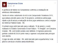 Para os dias 10 e 14, por exemplo, quando seriam realizadas as rodadas 1 e 2 do certame, o Campinense anuncia dois amistosos contra o América de Natal.